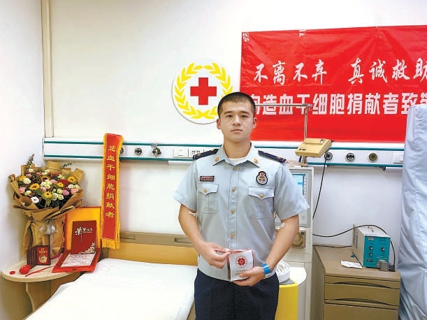 2021年5月,劉明航接到天津市紅十字會(huì)來(lái)電,他與一名2007年出生的血液病患者初配型成功,他毫不猶豫地回復(fù)愿意捐獻(xiàn)并前往天津,順利通過(guò)體檢和高分辨配型,并于同年6月完成捐獻(xiàn)。今年3月,他又接到北京市紅十字會(huì)的電話,患者病情出現(xiàn)了反復(fù),需要再進(jìn)行淋巴細(xì)胞移植鞏固治療?!爱?dāng)我接到需要二次捐獻(xiàn)的消息時(shí),我心里其實(shí)沒(méi)有絲毫猶豫,因?yàn)槲沂且幻绬T,聽(tīng)到救人,是義無(wú)反顧的?!闭f(shuō)服了母親,劉明航再次前往采集淋巴細(xì)胞的醫(yī)院。