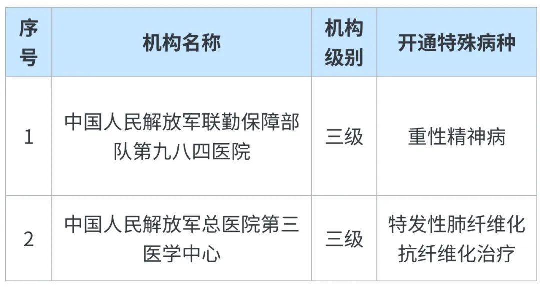 新開通特殊病種服務(wù)的定點(diǎn)醫(yī)療機(jī)構(gòu)