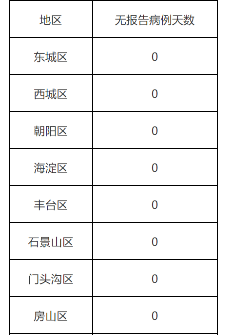 全市16區(qū)和經(jīng)濟技術開發(fā)區(qū)無報告病例天數(shù)情況
