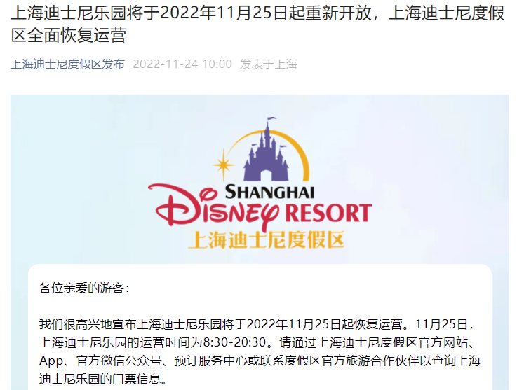 11月25日起,上海迪士尼樂(lè)園恢復(fù)運(yùn)營(yíng)