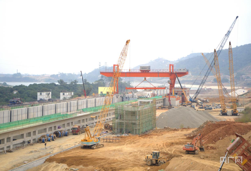 西津水利樞紐二線船閘工程建設(shè)正緊鑼密鼓進(jìn)行中(央廣網(wǎng)發(fā) 蔡俊聰 攝)