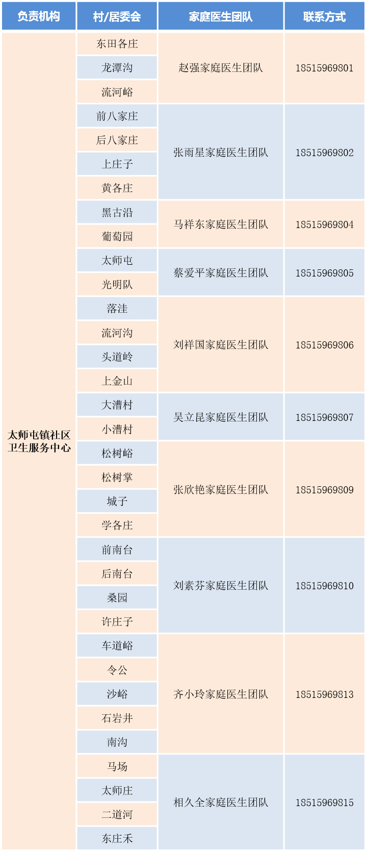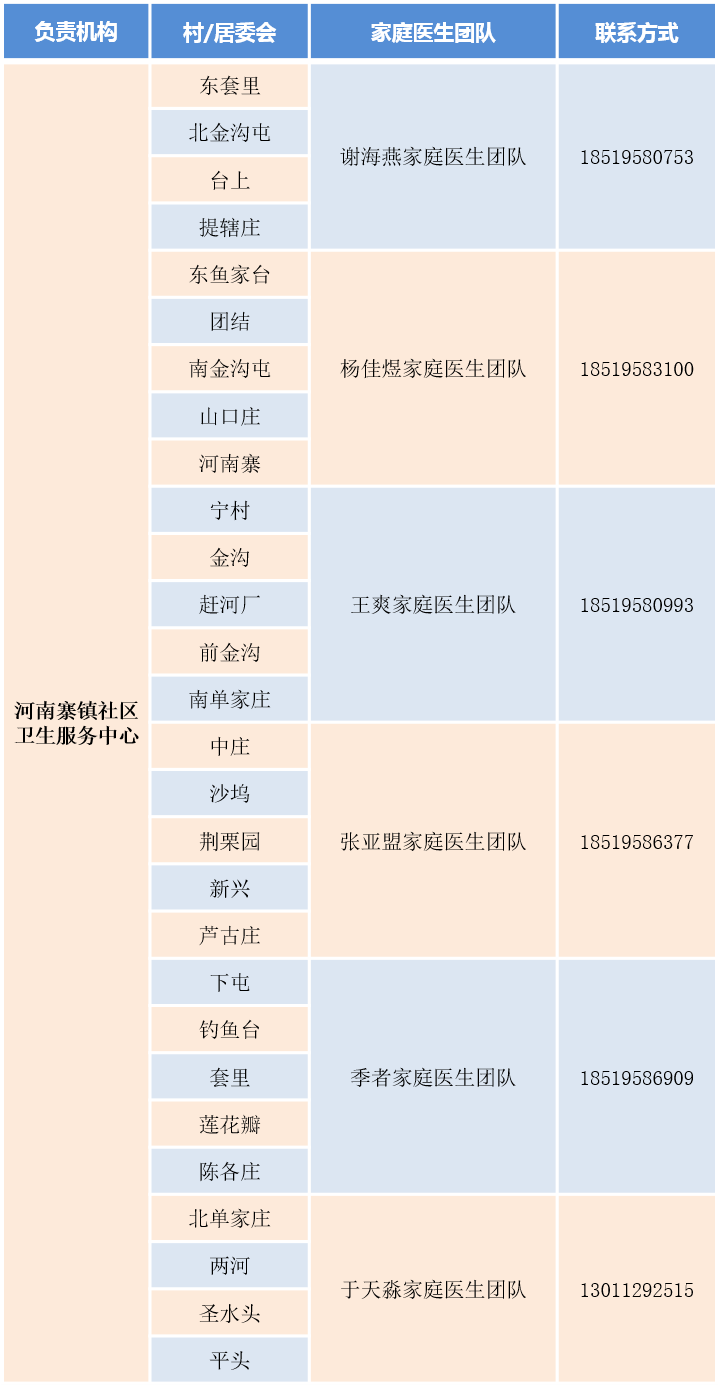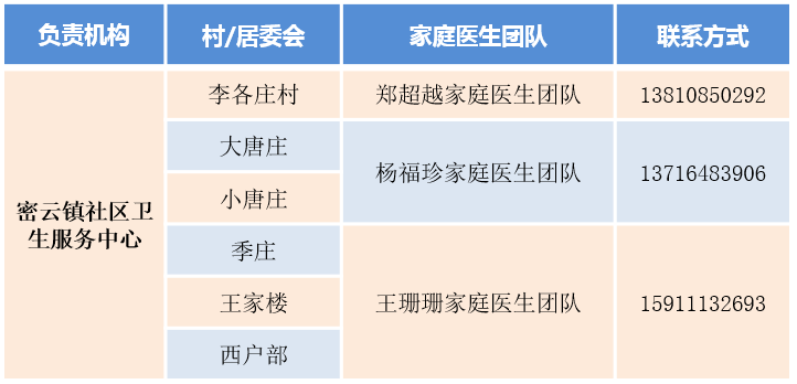 密云區(qū)家庭醫(yī)生團隊信息