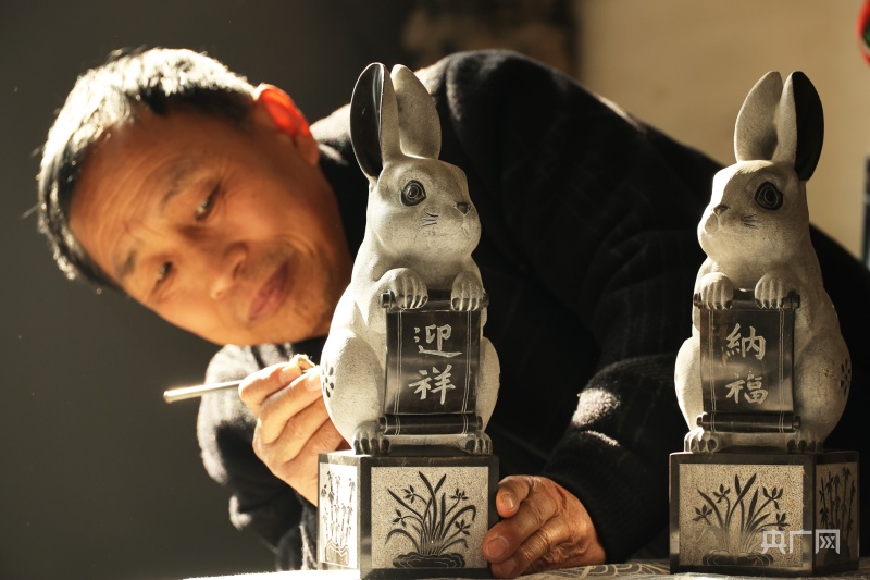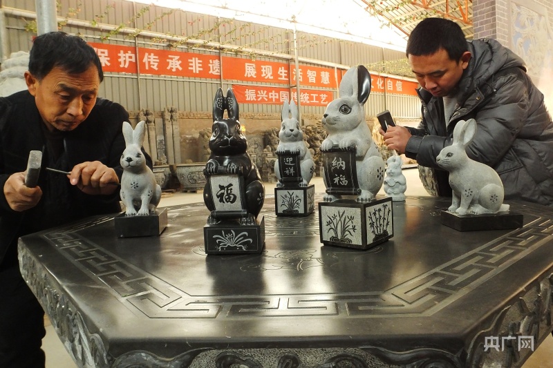 央廣網(wǎng)運城12月29日消息(記者任重)隨著農(nóng)歷兔年的日漸臨近,關于生肖兔的各種物件也紛紛登場。就在山西運城市新絳縣北張鎮(zhèn)西莊村農(nóng)民石雕創(chuàng)業(yè)園區(qū)內(nèi),由非遺絳州石雕制作技藝省級傳承人家玉順和市級傳承人家金輝精心設計并雕刻的絳州石雕兔年生肖作品于日前面世。