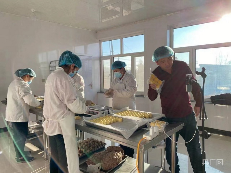 央廣網(wǎng)興安12月29日消息(記者王秋蕾 通訊員譚艷麗)“咱家的大黃米黏豆包,用的都是當(dāng)?shù)貎?yōu)質(zhì)的黃米,純手工制作,傳統(tǒng)口味,不含任何添加劑、色素,吃起來嘎嘎香,喜歡的老鐵們可以放心下單?!敝辈ラg內(nèi),張兆儀一邊用手機(jī)拍攝著工人現(xiàn)場制作粘黏豆包的鏡頭,一邊向直播間的網(wǎng)友們介紹著。