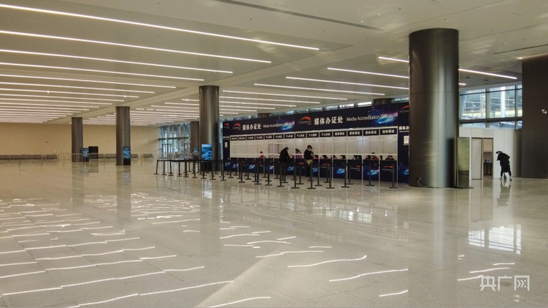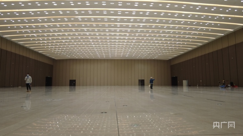 D區(qū)設(shè)有東西兩個登錄大廳,面積分別為9600、3000㎡,凈高約3.5米,圖為東登錄大廳(央廣網(wǎng)記者 夏燕 攝)