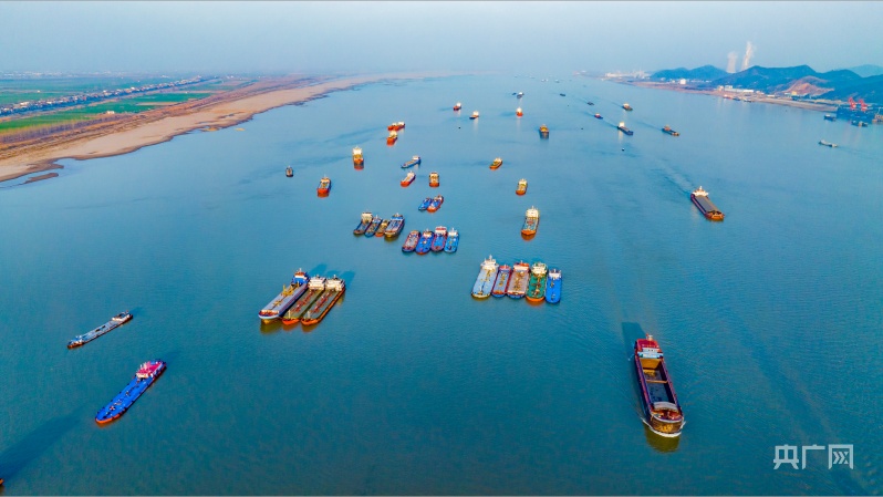 長(zhǎng)江航道江西省九江市湖口縣水域船舶往來穿梭,水運(yùn)一派繁忙(央廣網(wǎng)發(fā) 張玉 攝)