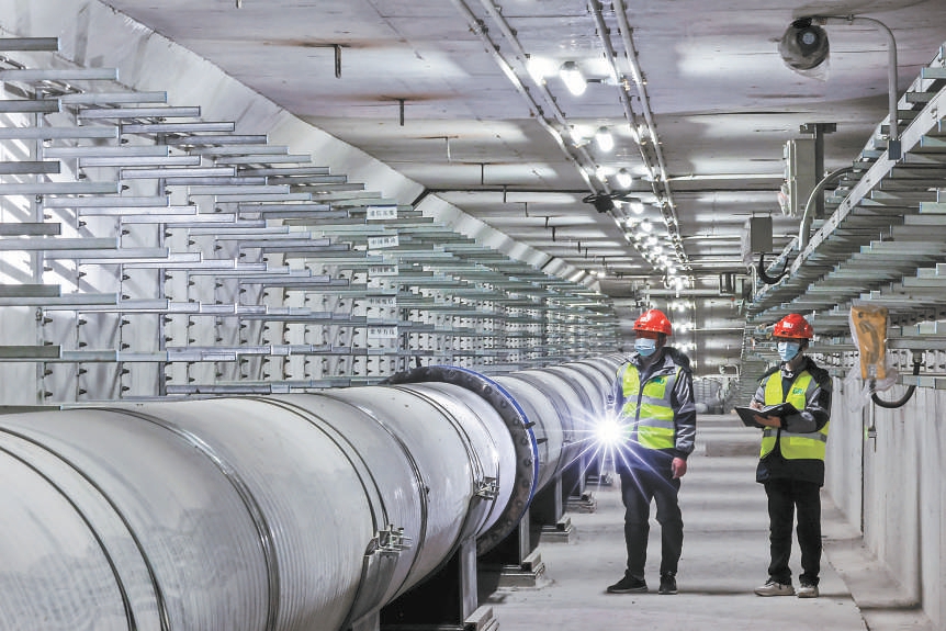 運(yùn)維人員對(duì)位于地下的大興機(jī)場(chǎng)高速綜合管廊進(jìn)行巡視。本報(bào)記者鄧偉攝