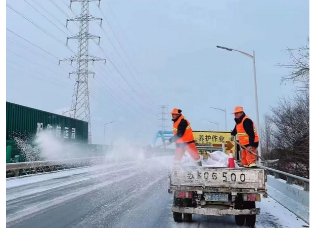 14日下午降雪后,公路部門以雪為令,第一時間啟動除雪保暢應(yīng)急預(yù)案,全市公路系統(tǒng)25支360余人的應(yīng)急隊伍全部出動,連夜在全市近千公里普通國省干線公路開展除雪融冰作業(yè),在結(jié)冰路段、橋梁、彎道等重點路段撒布融雪劑、防滑料,全力以赴確保公路安全暢通。