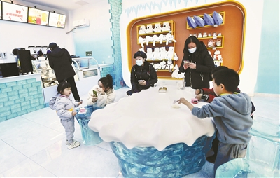 在觀摩體驗(yàn)區(qū),游客可以觀看有趣的制冰過(guò)程。游客熱衷在拍照打卡區(qū)和白熊雕塑合影,留下一段美好的記憶。在周邊商品展示區(qū),各類周邊商品陳列于此,供游客朋友挑選采購(gòu)。