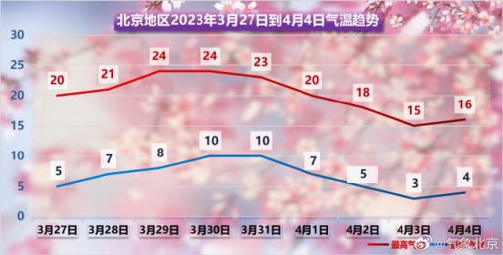 北京3月末每日最高氣溫都在20℃以上,4月初再迎降溫