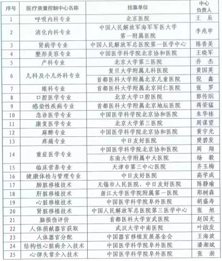 國家級醫(yī)療質(zhì)量控制中心名單公布,北京15家醫(yī)院入選
