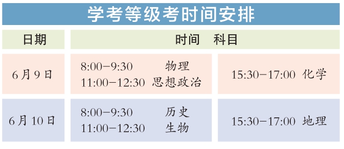 今年統(tǒng)一高考考試科目為語文、數(shù)學、外語3門,滿分均為150分。其中,英語聽說考試滿分50分,其他外語(非英語)聽力考試滿分30分,兩次聽說(聽力)考試的最高成績與其他部分試題成績一同組成外語科目成績計入高考總分。學考等級考科目為思想政治、歷史、地理、物理、化學、生物6門,由考生自主選擇3門參加考試,每科目滿分100分。參加本科招生錄取的考生總成績由3門統(tǒng)一高考成績和考生選考的3門學考等級考成績構成,總成績滿分值為750分。