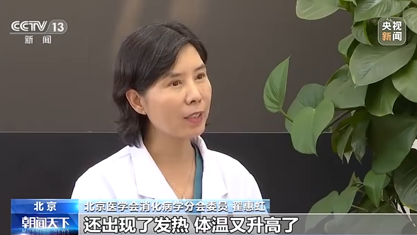 北京醫(yī)學(xué)會消化病學(xué)分會委員 翟惠虹:到了夏天的時(shí)候,如果當(dāng)您吃完了食物之后,莫名其妙地就開始嘔吐,伴隨著上廁所的次數(shù)增加,就要警惕了,有可能就是腸道感染了,最好及時(shí)到醫(yī)院去。那么如果在這個(gè)上吐下瀉的過程中,還出現(xiàn)了發(fā)熱、體溫又升高了,不管這個(gè)體溫是低熱還是高熱,我建議您一定要到醫(yī)院接受相應(yīng)的診斷和治療。