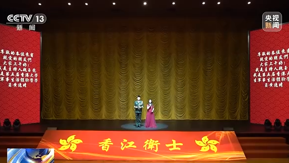 《香江衛(wèi)士》主題文藝演出舞臺上,身著紅色禮服的香港女孩黃逸晴與駐軍官兵同臺主持。黃逸晴是2015年香港大學(xué)生軍事生活體驗營的學(xué)員,大學(xué)畢業(yè)后,她經(jīng)常從事社會公益工作,把愛國精神、奉獻(xiàn)情懷傳遞給更多人。