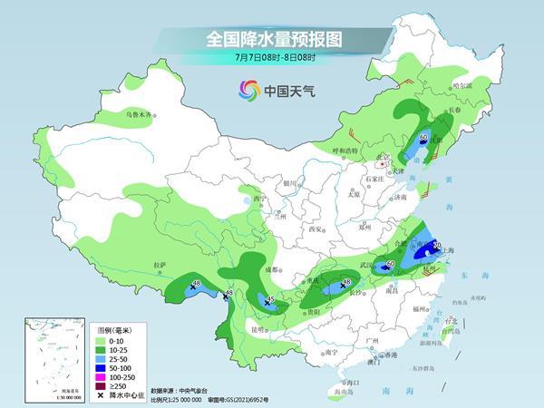 后天,內蒙古東南部、東北地區(qū)南部、江淮、江南北部、四川西部和南部、貴州北部、云南西部等地部分地區(qū)有中到大雨,其中,遼寧西部、安徽東南部、江蘇中南部、湖北東部等地部分地區(qū)有暴雨(50~70毫米)。