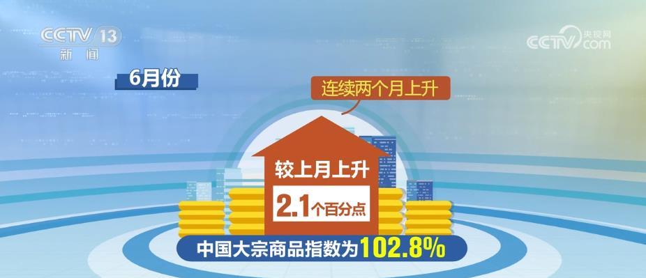 6月份,中國(guó)大宗商品指數(shù)為102.8%,較上月上升2.1個(gè)百分點(diǎn),連續(xù)兩個(gè)月上升。