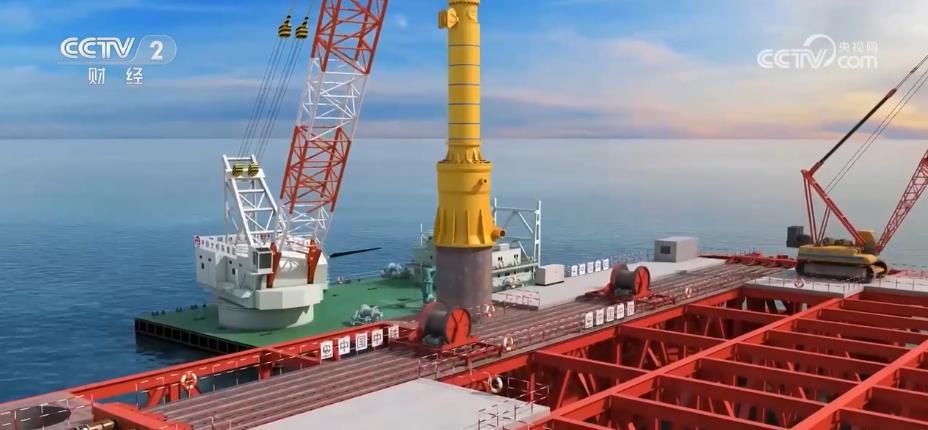 為了給大功率鉆機(jī)搭建一個(gè)穩(wěn)定的施工平臺,2023年年初,一個(gè)重達(dá)7600噸的自浮式鉆孔平臺抵達(dá)5號墩位。這個(gè)全新研發(fā)的鉆孔平臺,平面尺寸超過13000平方米,相當(dāng)于31個(gè)標(biāo)準(zhǔn)籃球場大小,定位誤差卻控制在30厘米以內(nèi),角度偏差小于1度。這在世界橋梁建設(shè)中還是首次嘗試。