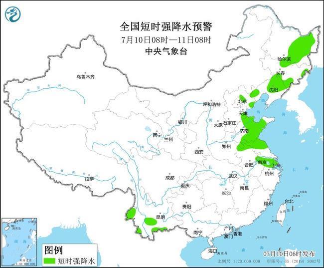 中央氣象臺7月10日6時繼續(xù)發(fā)布強對流天氣藍(lán)色預(yù)警:預(yù)計7月10日08時至11日08時,吉林東南部、遼寧北部和西部、山東中東部和南部、江蘇北部和南部、浙江北部等地的部分地區(qū)將有8-10級雷暴大風(fēng)或冰雹天氣;黑龍江中東部、吉林中東部、遼寧中北部和西南部、河北東北部、北京東北部、天津南部、山東、安徽北部、江蘇北部和南部、上海、浙江北部、云南西部和南部等地的部分地區(qū)將有短時強降水天氣,小時雨量30-50毫米,局地可達(dá)60毫米以上。