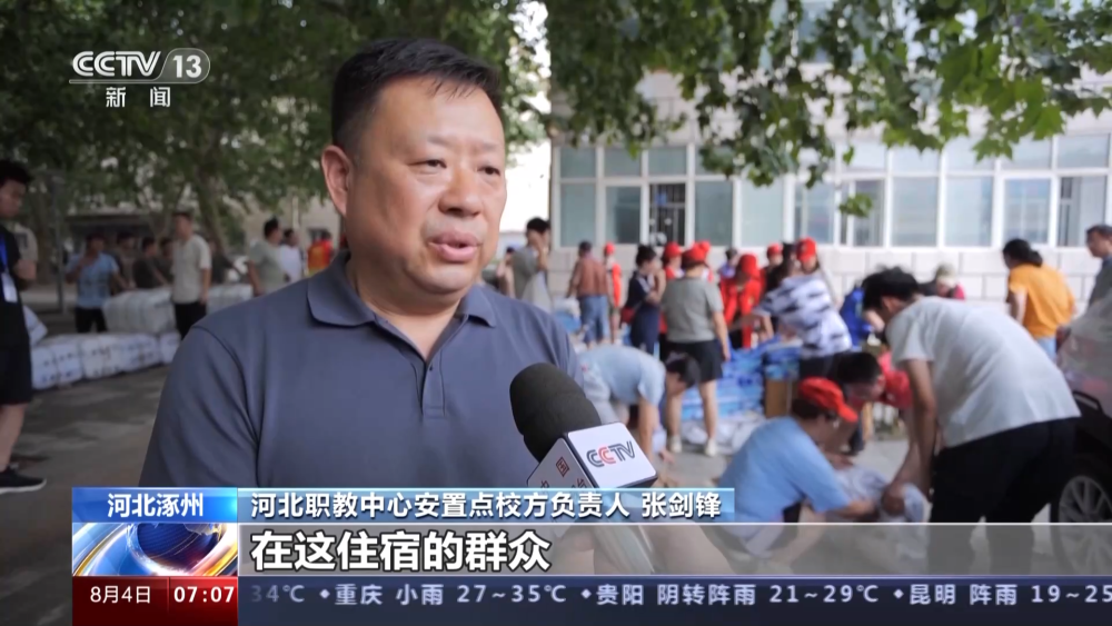 河北涿州受災后,涿州職教中心緊急啟動了受災群眾的安置工作,全校動員黨員干部職工200余人參與到志愿服務工作中。正值學校暑假,校方為群眾安排了學生宿舍供前來的受災群眾臨時住宿,已有約2600名本地受災群眾陸續(xù)抵達這里。