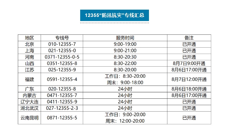 12355防汛抗災心理專線開通 為受災青少年及家長提供心理疏導