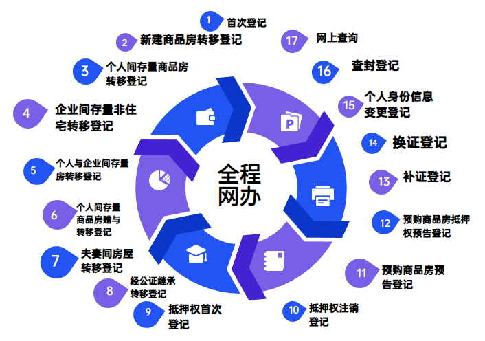 ?。?7項(xiàng)常見登記業(yè)務(wù)的“全程網(wǎng)辦”示意圖,圖源:北京市規(guī)劃和自然資源委員會(huì)微信公眾號(hào),央廣網(wǎng)發(fā))
