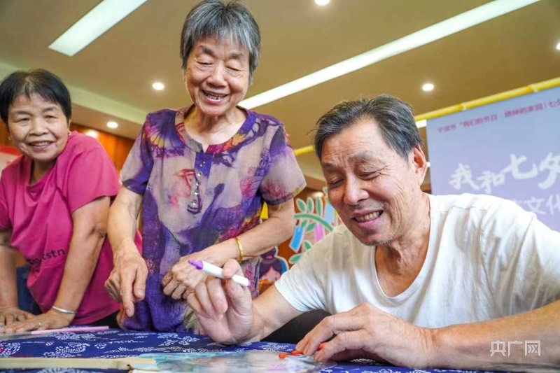 現(xiàn)場,老人們在海曙區(qū)橫街鎮(zhèn)成人文化技術(shù)學(xué)校教師的介紹下,了解七夕節(jié)的來歷和意義,并體驗“穿針乞巧”、團扇制作。此外,轄區(qū)青少年也一起來參加活動,在豐富暑期生活的同時,與爺爺奶奶們共同感悟傳統(tǒng)文化的魅力。