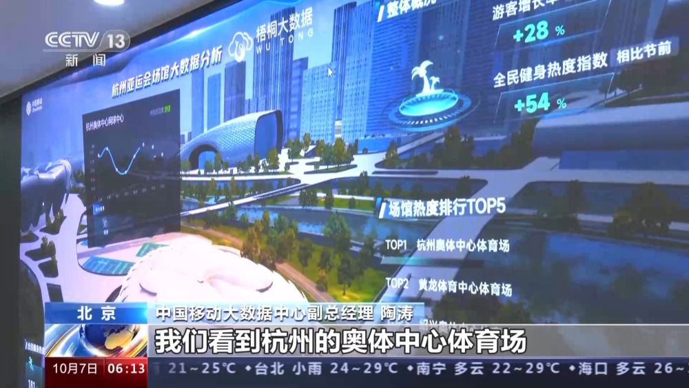 中國移動(dòng)大數(shù)據(jù)中心副總經(jīng)理 陶濤:前往亞運(yùn)會(huì)主要舉辦城市的游客的數(shù)量相比節(jié)前一周日均增幅超過28%,主要是來自長三角地區(qū)以及津京冀等地區(qū)。根據(jù)我們對(duì)于線上訂票以及搜索這些數(shù)據(jù)的分析,我們看到杭州的奧體中心體育場(chǎng)、黃龍?bào)w育中心體育場(chǎng)以及紹興奧體中心體育館這三個(gè)場(chǎng)館是最熱的體育場(chǎng)館。