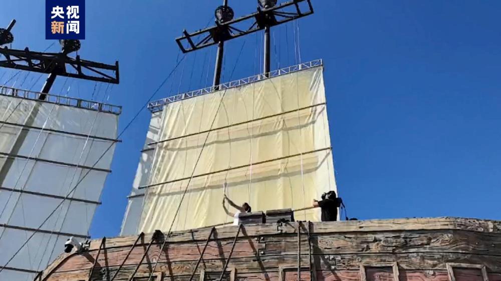 14名圣火少女表演南珠賦舞蹈,護(hù)送采火人至采火點(diǎn),采火人采集火種從漢船走下來(lái),14名圣火少女以道具形式呈現(xiàn)南珠形狀,迎接圣火,采火人穿過(guò)舞臺(tái)走上主席臺(tái)圣火盆前,展示采火棒。