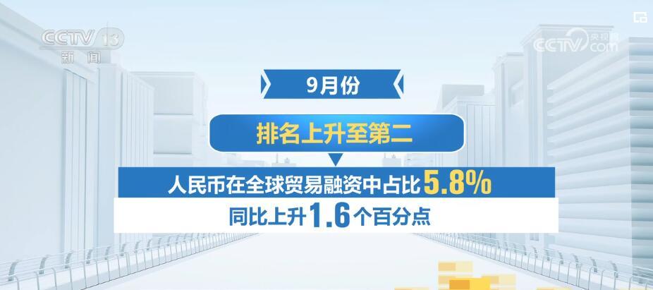 伴隨著中國(guó)金融業(yè)對(duì)外開放持續(xù)深化,人民幣國(guó)際化水平持續(xù)提升。從貿(mào)易看,今年1—9月,貨物貿(mào)易中人民幣結(jié)算的占比達(dá)到了24.4%,同比上升7個(gè)百分點(diǎn),為近年來最高水平。與此同時(shí),人民幣融資貨幣功能穩(wěn)步提升。9月份,人民幣在全球貿(mào)易融資中占比為5.8%,同比上升1.6個(gè)百分點(diǎn),排名上升至第二。目前,全世界有80多個(gè)國(guó)家和經(jīng)濟(jì)體將人民幣納入儲(chǔ)備貨幣。