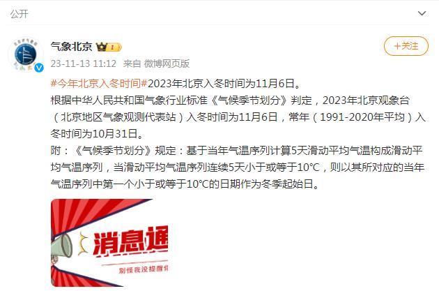 2023年北京入冬時(shí)間為11月6日
