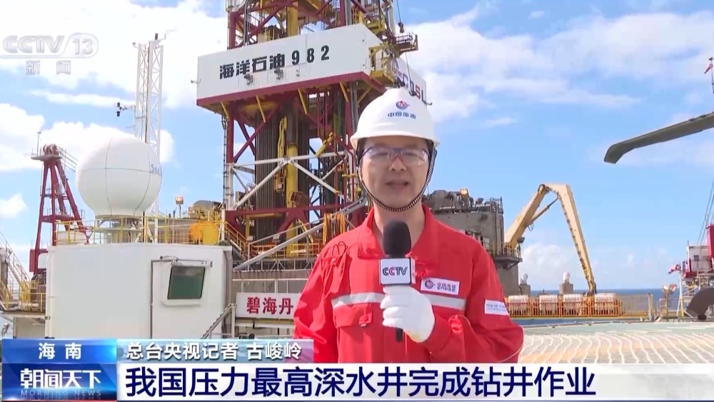 總臺(tái)央視記者 古峻嶺:我現(xiàn)在是在海南島東南方向約180公里處的海洋石油982鉆井平臺(tái)上,在我腳下約1000米深處的海底 ,就是剛剛完成鉆井作業(yè)的A12井,它的地層絕對(duì)壓力超過(guò)69兆帕,相當(dāng)于我們家用高壓鍋工作壓力的1000倍。
