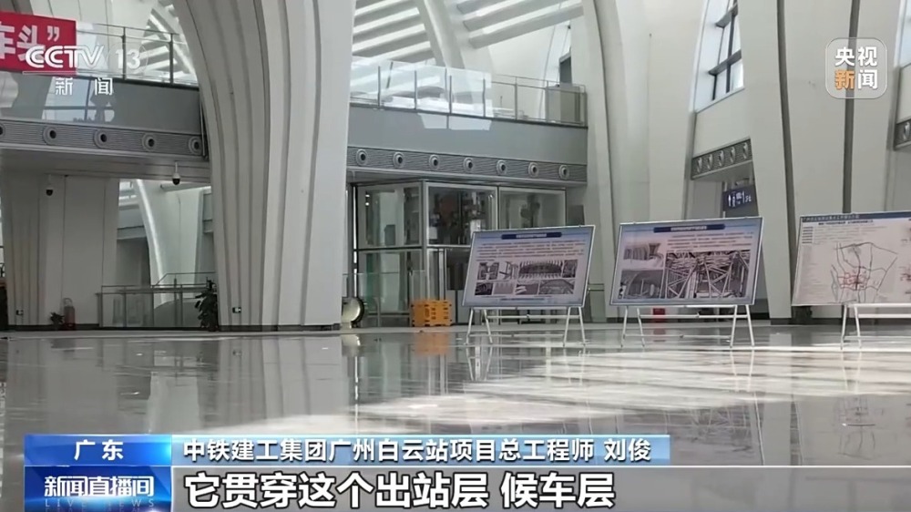 中鐵建工集團(tuán)廣州白云站項(xiàng)目總工程師 劉俊:它貫穿這個(gè)出站層、候車層,實(shí)現(xiàn)自然采光,可以節(jié)約用電。