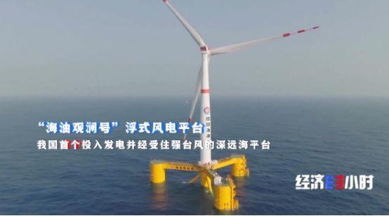 距離海南文昌海岸線136公里的海洋深處,“海油觀瀾號”浮式風電平臺迎風挺立。這是我國第一個投入發(fā)電并經(jīng)受住強臺風的深遠海風電平臺,于今年5月份并網(wǎng)發(fā)電。