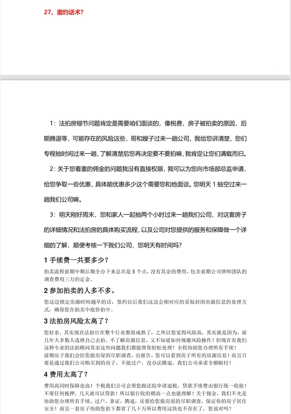 吳先生給記者提供了一份法拍房中介推銷話術(shù)
