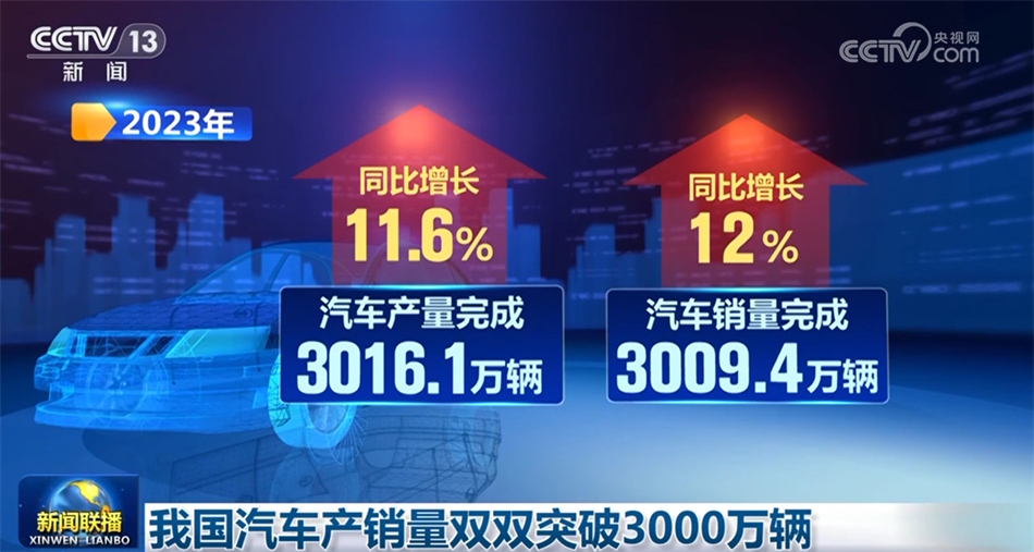 中國汽車工業(yè)協(xié)會(huì)1月11日發(fā)布的數(shù)據(jù)顯示,2023年,我國汽車產(chǎn)銷量首次雙雙突破3000萬輛,創(chuàng)歷史新高。