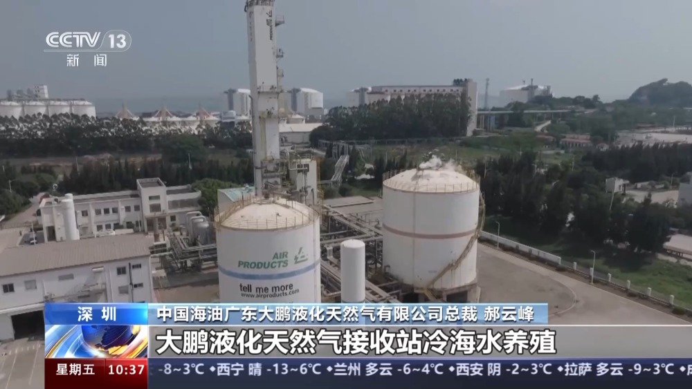 中國海油廣東大鵬液化天然氣有限公司總裁 郝云峰:我們?cè)谏a(chǎn)過程中會(huì)產(chǎn)生大量的冷海水,非常適合高經(jīng)濟(jì)價(jià)值的魚類生長,利用這些海水來進(jìn)行魚類的養(yǎng)殖,把這些冷水充分利用起來,會(huì)產(chǎn)生很大的經(jīng)濟(jì)效益,這也是循環(huán)經(jīng)濟(jì)的具體體現(xiàn)。