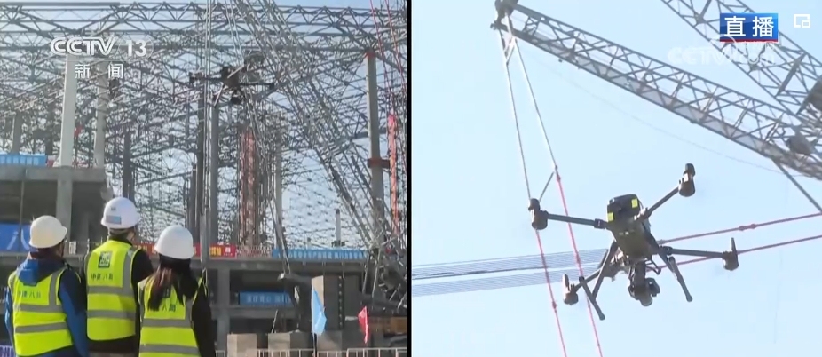 總臺(tái)記者 韓志濤:施工當(dāng)中要在高空中定位,并且多臺(tái)液壓機(jī)同時(shí)提升,誤差要控制在3毫米以內(nèi),這樣的精度是如何把控的?屋蓋上空有無人機(jī)在飛行,它在完成攝影的同時(shí),會(huì)同步按照規(guī)劃好的航測(cè)路線,直接構(gòu)建屋蓋網(wǎng)架的高精度三維模型,同時(shí)完成實(shí)體與數(shù)字模型的精準(zhǔn)對(duì)接。這些鋼梁上都有一個(gè)應(yīng)變傳感器,它是一個(gè)診斷小能手,可以為屋蓋結(jié)構(gòu)提供全天候監(jiān)測(cè)診斷服務(wù),通過精準(zhǔn)“把脈”保證屋蓋網(wǎng)架結(jié)構(gòu)從施工到運(yùn)營的數(shù)據(jù)安全。施工方還創(chuàng)建了規(guī)劃設(shè)計(jì)統(tǒng)籌、目標(biāo)工期管控、特殊工藝運(yùn)用等“三大智囊平臺(tái)”,通過數(shù)字化、智能化全力推進(jìn)機(jī)場(chǎng)建設(shè)。