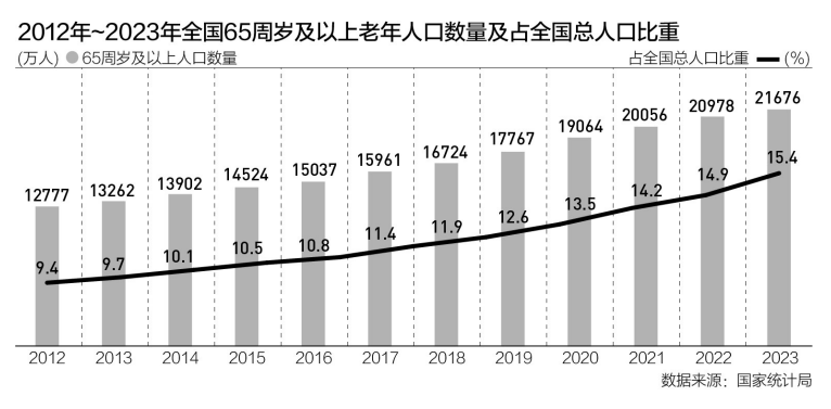 國家統(tǒng)計局發(fā)布最新人口數(shù)據(jù)顯示,60歲及以上人口29697萬人,占全國人口的21.1%,其中65歲及以上人口21676萬人,占全國人口的15.4%。根據(jù)聯(lián)合國關(guān)于老齡化的劃分標(biāo)準(zhǔn),我國已經(jīng)進(jìn)入了中度老齡社會。