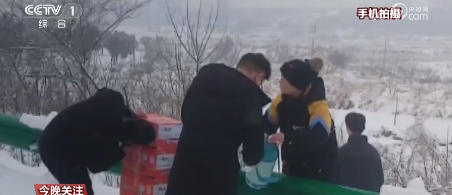 河南光山:車輛滯留高速 居民接力送上熱乎飯