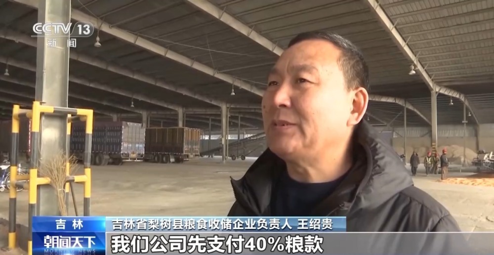 吉林省梨樹縣糧食收儲企業(yè)負責人 王紹貴:合作社或者是種糧大戶可以先把糧送到我們公司,我們公司先支付40%糧款,剩余部分賣糧戶可以在合適的價格,確定價格之后再一起結(jié)算。
