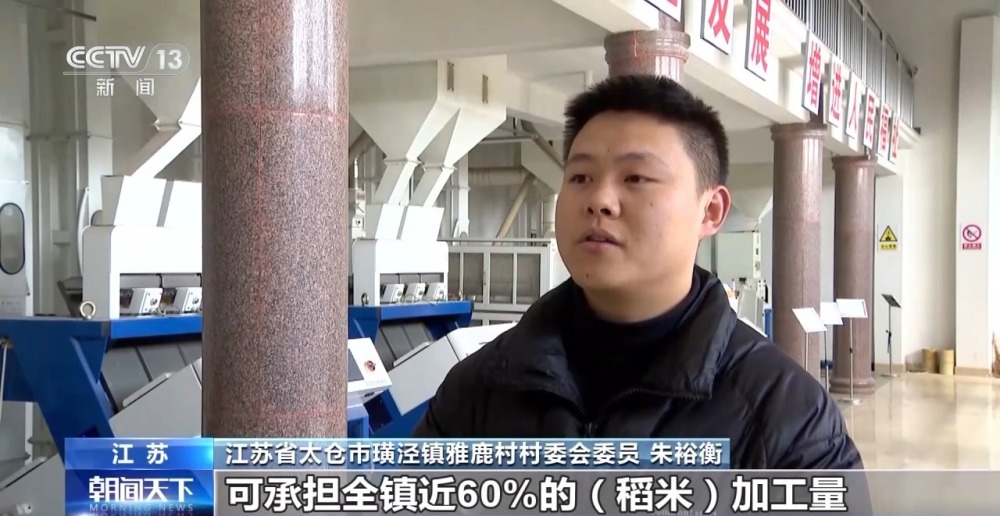江蘇省太倉市璜涇鎮(zhèn)雅鹿村村委委員 朱裕衡:這個加工廠是由我們和隔壁的楊漕村、孟河村三個村一起投資建設(shè)的,可承擔全鎮(zhèn)近60%的(稻米)加工量,其他村都可以到這邊來加工,服務都是一樣的。