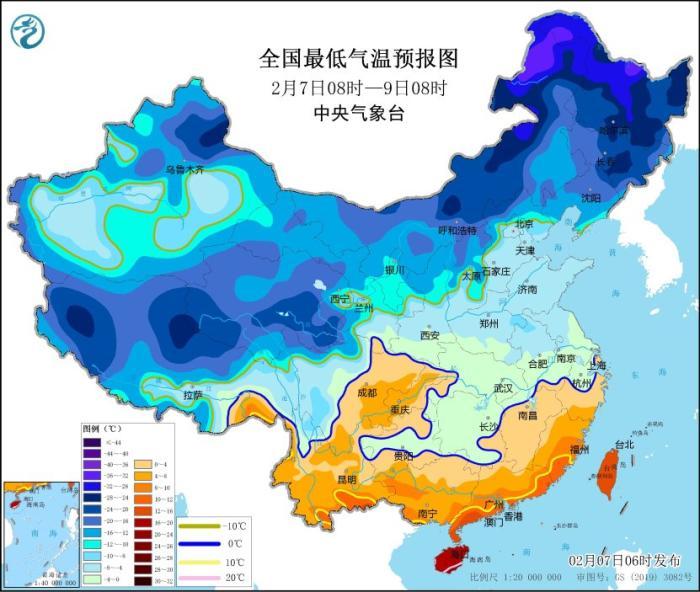 中央氣象臺(tái)2月7日06時(shí)繼續(xù)發(fā)布低溫藍(lán)色預(yù)警