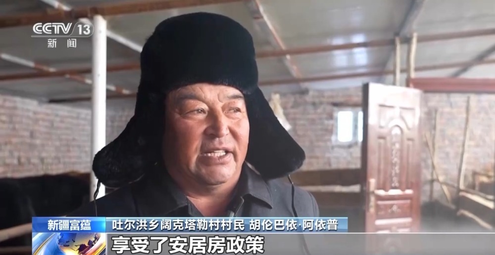 吐爾洪鄉(xiāng)闊克塔勒村村民 胡倫巴依·阿依普:黨和政府的關(guān)懷下,享受了安居房政策,也有暖和的暖圈。今天(18日)晚上溫度已經(jīng)達(dá)到了零下52℃,牲畜都在暖圈里,飼草料也充足。