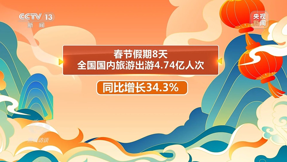 春節(jié)假期,全國上下洋溢著喜氣洋洋、紅紅火火的節(jié)日氣氛。農(nóng)歷正月初一至初八,電影總票房突破80億元,創(chuàng)中國影史春節(jié)檔票房紀(jì)錄;春節(jié)假期8天全國國內(nèi)旅游出游4.74億人次,同比增長(zhǎng)34.3%;臘月二十三以來,全國重點(diǎn)商圈的客流總量同比增長(zhǎng)超70%;春節(jié)前后,超500萬條打卡傳統(tǒng)文化的內(nèi)容在社交平臺(tái)上掀起熱潮。
