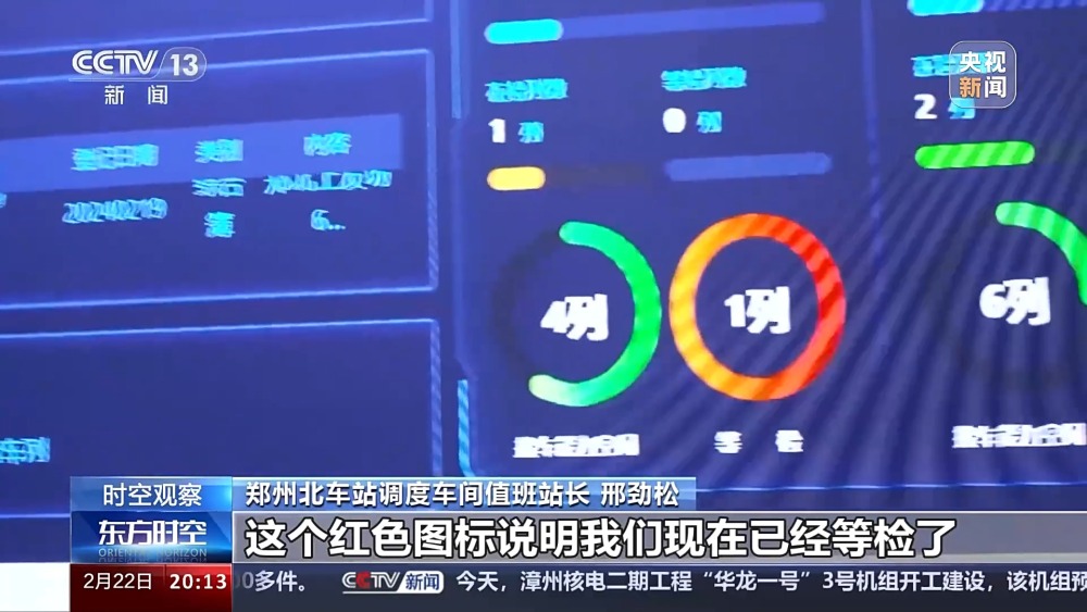 鄭州北車站調(diào)度車間值班站長 邢勁松:三種圖標(biāo),你看黃色圖標(biāo)說明我們檢車能力不太緊張,然后綠色圖標(biāo)說明我們接車能力空閑,紅色圖標(biāo)說明我們現(xiàn)在已經(jīng)等檢了。今天我們白班基本上開了三列化肥煤車,通過大數(shù)據(jù)服務(wù)我們的春耕生產(chǎn)。