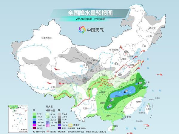 后天,內(nèi)蒙古西部和東北部、東北地區(qū)東部、新疆南疆、西藏東部、西北地區(qū)中東部、黃淮東部、安徽北部、江漢西部、川西高原北部等地的部分地區(qū)有小到中雪或雨夾雪。西藏東南部、西南地區(qū)東部、江漢、江淮、江南大部、華南西部等地的部分地區(qū)有小到中雨,其中,安徽中南部、江蘇南部、湖北東部、湖南中西部和北部、江西北部、廣西東北部等地的部分地區(qū)有大雨(25~40毫米)。