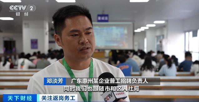 廣東惠州某企業(yè)普工招聘負責人 鄧淡芳:我們企業(yè)在初四就已經(jīng)開始正常招聘了,同時我們也跟隨市和區(qū)人社局,在初七的時候就開始走出去了,去了云南、湖南。