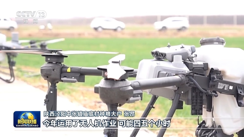 陜西涇陽(yáng)中張鎮(zhèn)廟底村種糧大戶 張昂:往年我們用的人工噴灑,作業(yè)時(shí)間長(zhǎng),而且成本也比較高,今年運(yùn)用了無(wú)人機(jī)作業(yè),可能四五個(gè)小時(shí),把我這兩千畝麥田的作業(yè)就基本完成了,而且還省錢(qián)。