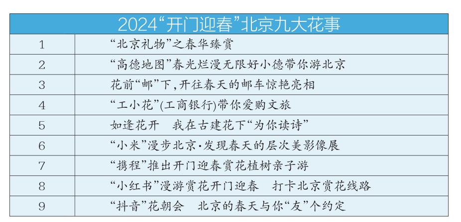 此外,還有工行北京分行愛購文旅、小米影像展、小紅書打卡北京賞花線路等活動(dòng),以花事展現(xiàn)北京春天的生機(jī)活力。