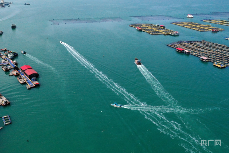 養(yǎng)殖工人駕駛漁船在寧德市蕉城區(qū)白基灣海域作業(yè)(央廣網(wǎng)發(fā) 王旺旺 攝)